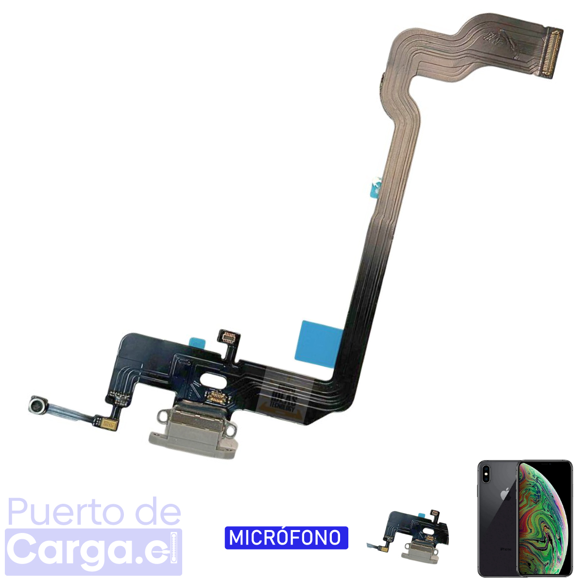 Este puerto de carga / flex compatible para iPhone XS está diseñado para solucionar problemas comunes como equipo que no carga, carga intermitente, falso contacto, o conector Lightning dañado.
